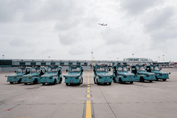 To ensure safe integration with human-driven vehicles and personnel, dedicated autonomous vehicle zones have been marked across the airside, and all autonomous tractors carry clear identification labels.